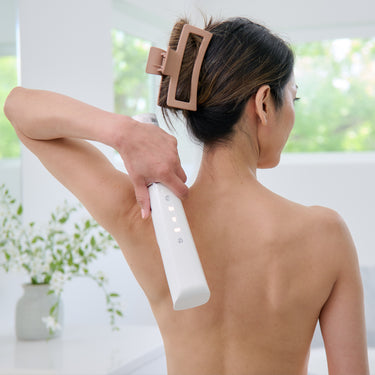 Thanks to our technology, the droplets land on the skin because they are positively charged. The hair is neutrally charged, which allows the droplets to pass through to the skin.