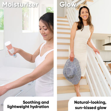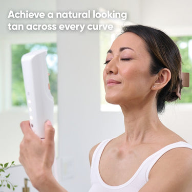 The TAN cartridge, available in Light, Medium, or Dark, dries in about 10 minutes and develops into a beautiful tan over 8–10 hours. Finish your look with the Body Glow cartridge for a radiant, red carpet-worthy sheen—or wear it alone for a subtle, sun-kissed shimmer.